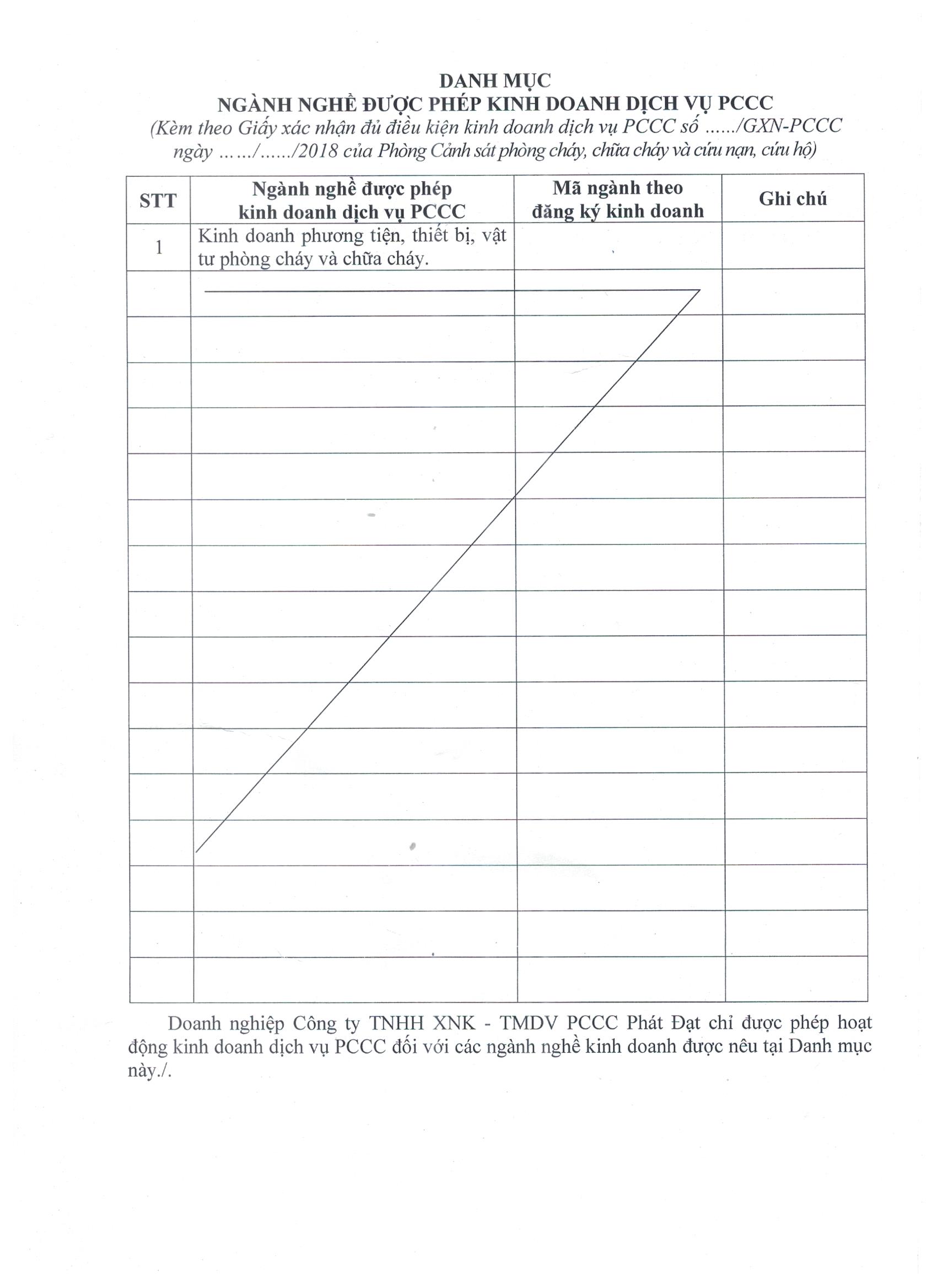 CÔNG TY TNHH XNK TM DV PCCC PHÁT ĐẠT