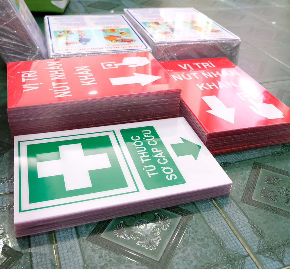 2. Hướng dẫn cách sử dụng biển khu vực tủ thuốc cấp cứu mica gia công: