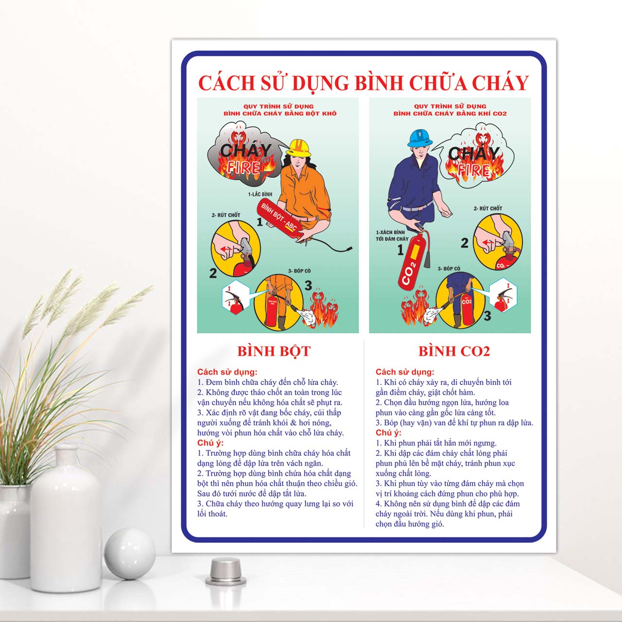 ➤Bảng cách sử dụng bình chữa cháy mica thường được sử dụng trong các công ty, nhà máy, xi nghiệp, nhà hàng, khách sạn, trung cư,... giúp hỗ trợ việc sử dụng bình chữa cháy đúng cách nếu không may có sự cố cháy nổ xảy ra.