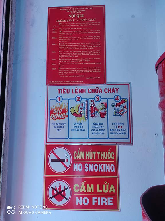 ➤Việc đặt những bộ bảng nội quy kèm tiêu lệnh chữa cháy ở những nơi đông người cũng chỉ là cho mọi người biết, quan trọng là ý thức của người dân còn rất kém, cần phải nâng cao ý thức người dân bằng cách tuyên truyền, tăng mức phạt, hướng dẫn người dân thực hiện tốt những quy định là để đảm bảo an toàn tính mạng và tài sản.