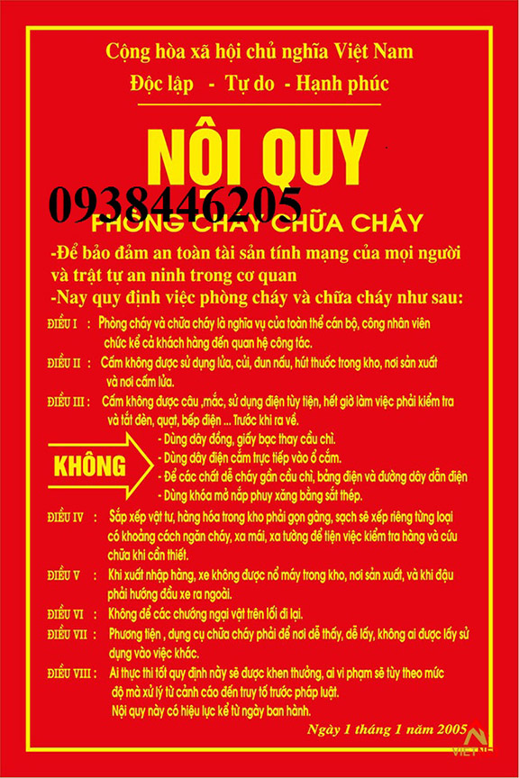 ●Bảng nội quy PCCC: 33cm x 46cm.