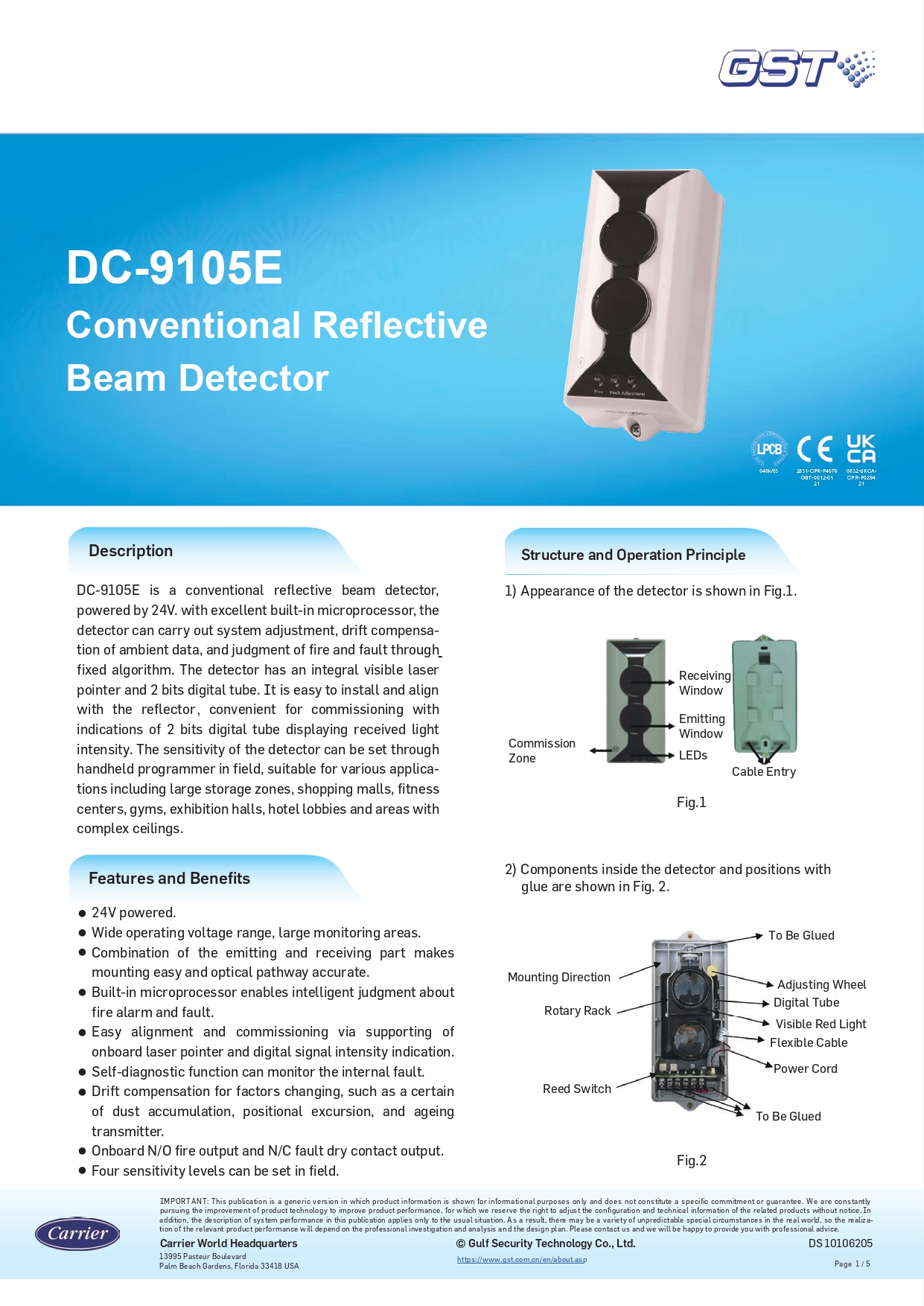 ➤Đầu báo khói dạng Beam hãng GST DC-9105E là đầu báo khói địa chỉ tia chiếu dạng phản xạ có thể sử dụng cho cả hệ thống báo cháy thường GST hay hệ thống báo cháy thường khác. Đầu báo truyền trạng thái báo cháy, báo lỗi thông qua các tiếp điểm khô. Đầu báo phải được sử dụng với các kính phản xạ, 1 hoặc 4 miếng tùy thuộc vào khoảng cách đến đầu báo.