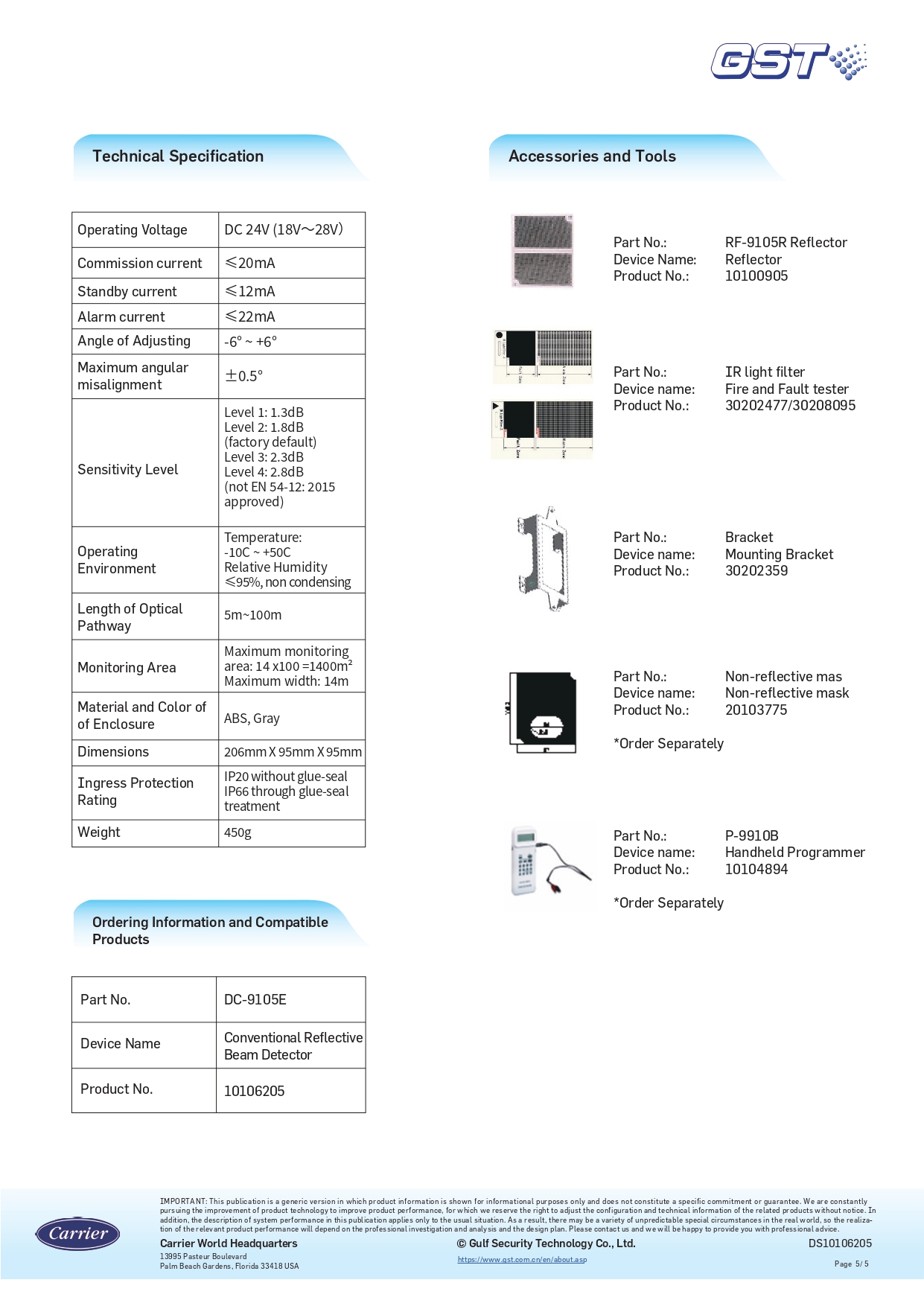 4. Catalogue đầu báo khói dạng Beam hãng GST DC-9105E