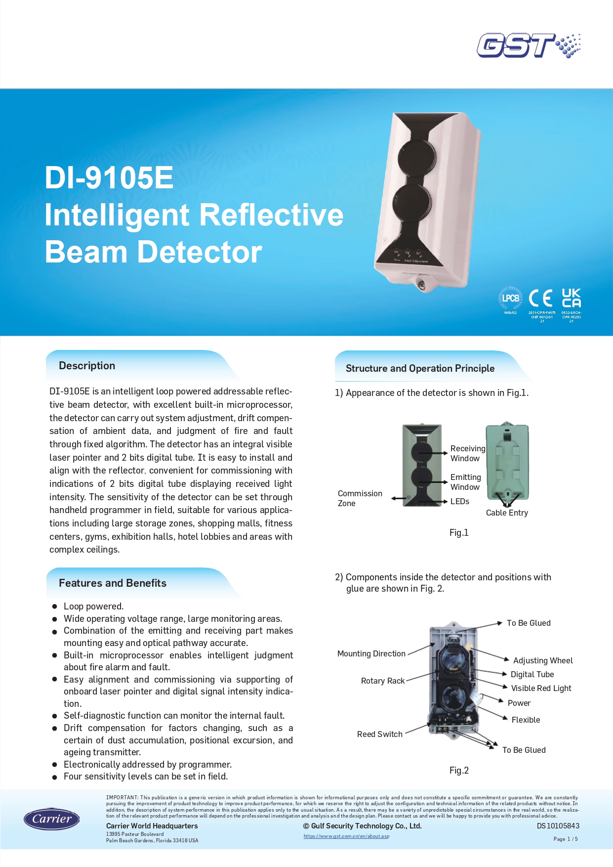 1. Thông tin chi tiết đầu báo khói Beam hãng GST DI-9105E: