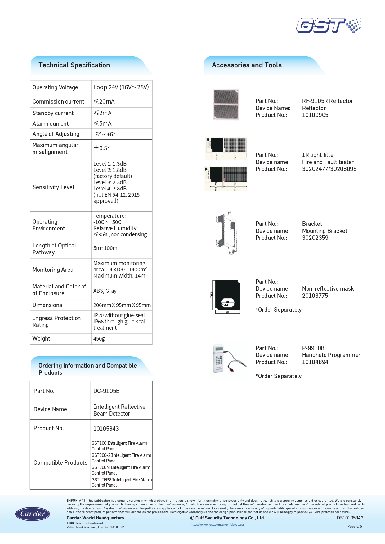 5. Catologue đầu báo khói Beam hãng GST DI-9105E:
