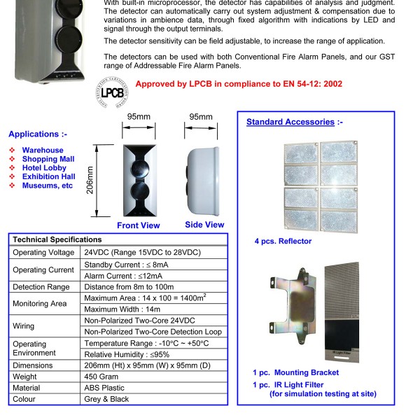 2. Các tính năng tiêu chuẩn của đầu báo khói dạng Beam phản xạ hãng GST I-9105R: