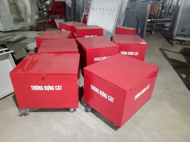 Khi xảy ra sự cố cháy nổ: Di chuyển thùng lại gần khu vực cháy và dùng xẻng xúc cát lên & hất vào đám cháy để dập lửa