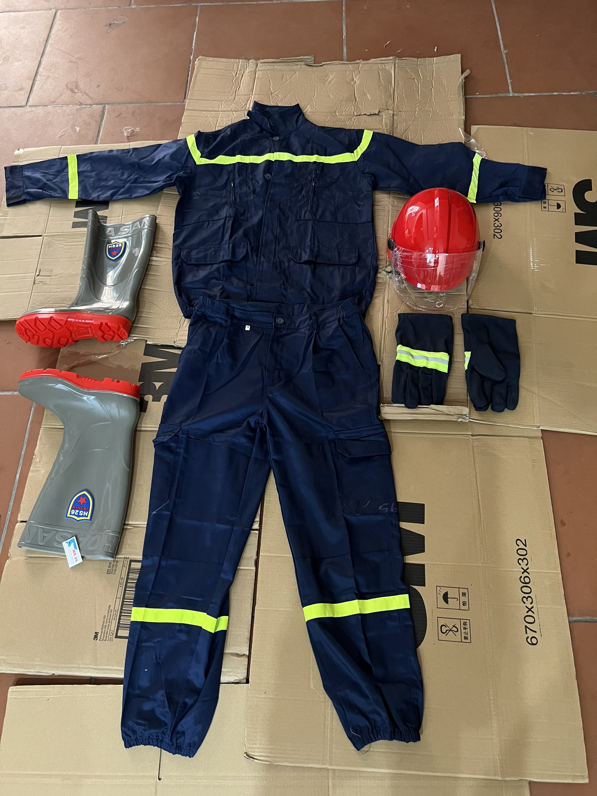 | Trang phục chữa cháy theo thông tư 48 - 5 món tem tròn (Quần áo, Ủng, Găng tay, Khẩu trang, Nón) |