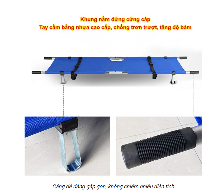 ➤Cáng Cứu Thương Theo Thông Tư 150 có thể gập gọn làm đôi, không cồng kềnh, dễ trong việc chuyên chở